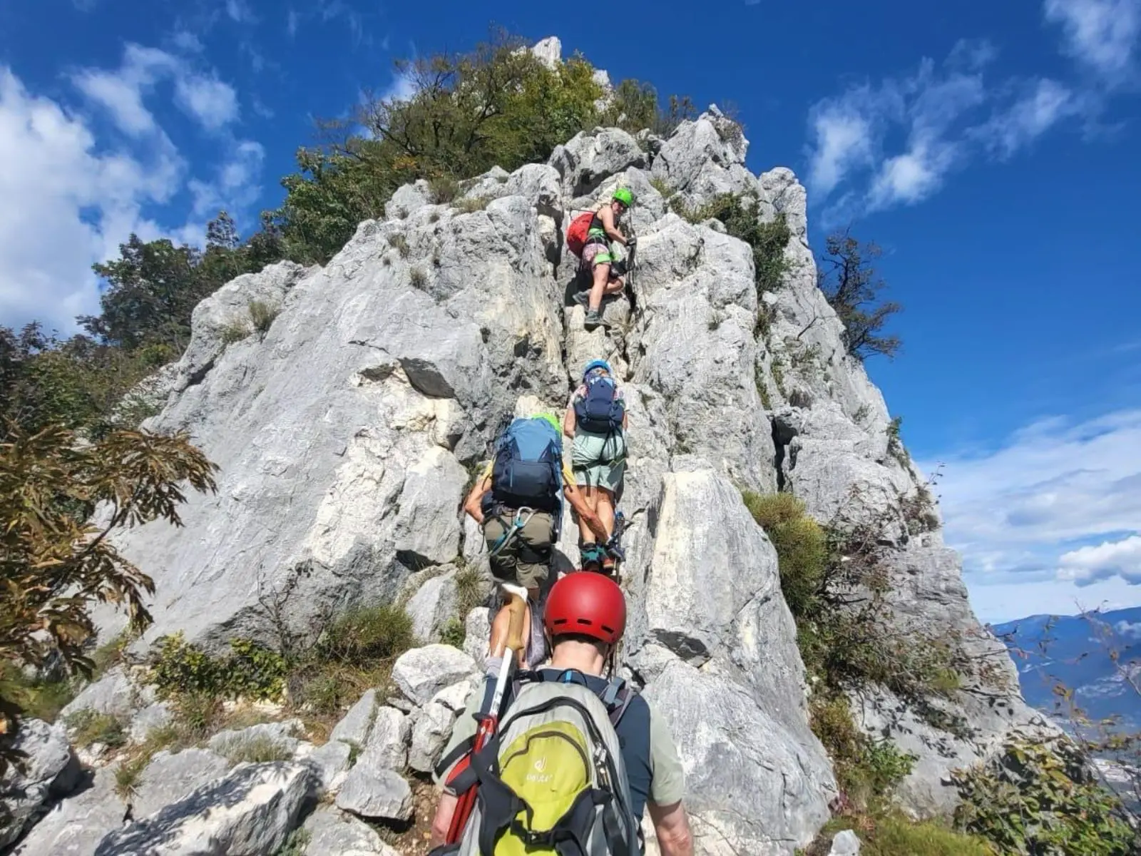 Am ersten Tag machten wir den Fennberg Klettersteig in Margreid bei Tramin an der Weinstraße, am zweiten Tag folgte der Colodri Klettersteig in Arco und wir besichtigten die Burg in Arco. Dann folgte der längste und wunderschöne Che Guevara Klettersteig.